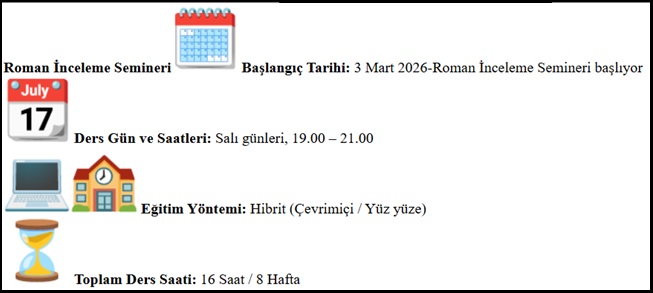 Başlangıç Tarihi: 3 Mart 2026-Roman İnceleme Semineri başlıyor