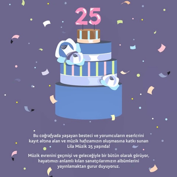 25 yıl… Bu, bir müzik dünyasında kök salmış bir çınarın hikayesi. Lila Müzik, sanata olan inancı ve müziğe olan tutkusu ile bu yolculuğu sürdürüyor. Her adımda daha da büyüyor, daha fazla kalbe dokunuyor. 25 yıllık bu muazzam başarıyı kutlarken, daha nice yıllarda birlikte müzik yapmayı diliyorum. Her notada, her projede birlikte olmanın gururunu yaşıyorum.