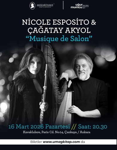 Dünya sahnelerinin iki seçkin ismi, flüt sanatçısı Nicole Esposito ve arp sanatçısı Çağatay Akyol, “Musique de Salon” konseptiyle dinleyicileri masalsı bir müzik yolculuğuna davet ediyor. Mozarthaus & um:ag Konserleri iş birliğiyle gerçekleşecek bu özel gecede, müziğin en saf ve rafine hali sahneye taşınıyor.