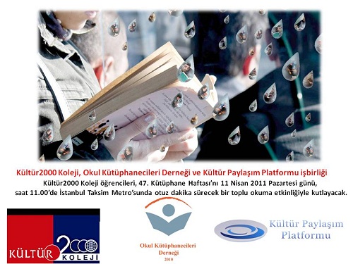 Kültür2000 Koleji öğrencileri, 47. Kütüphane Haftası’nı 11 Nisan 2011 Pazartesi günü, saat 11.00’de İstanbul Taksim Metro’sunda otuz dakika sürecek bir toplu okuma etkinliğiyle kutlayacak.
