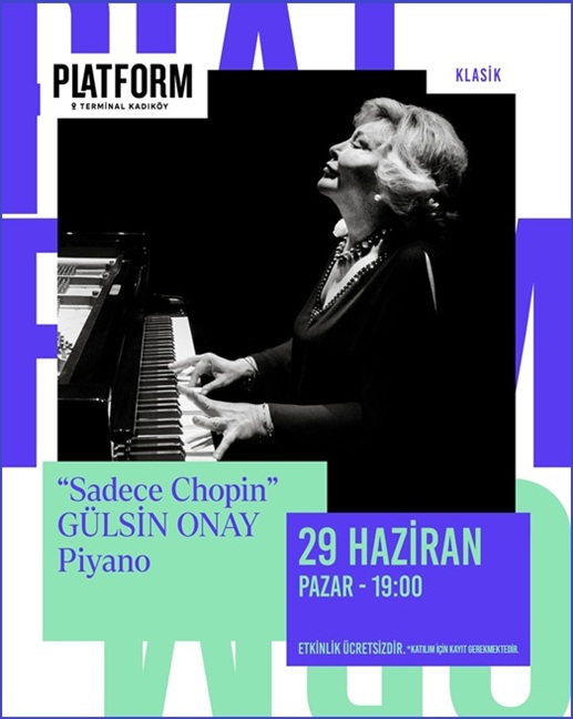 Dünyaca ünlü piyanist ve devlet sanatçısı Gülsin Onay, “Sadece Chopin” performansıyla; 29 Haziran Pazar saat 19.00 Terminal Kadıköy’deki Platform’da!